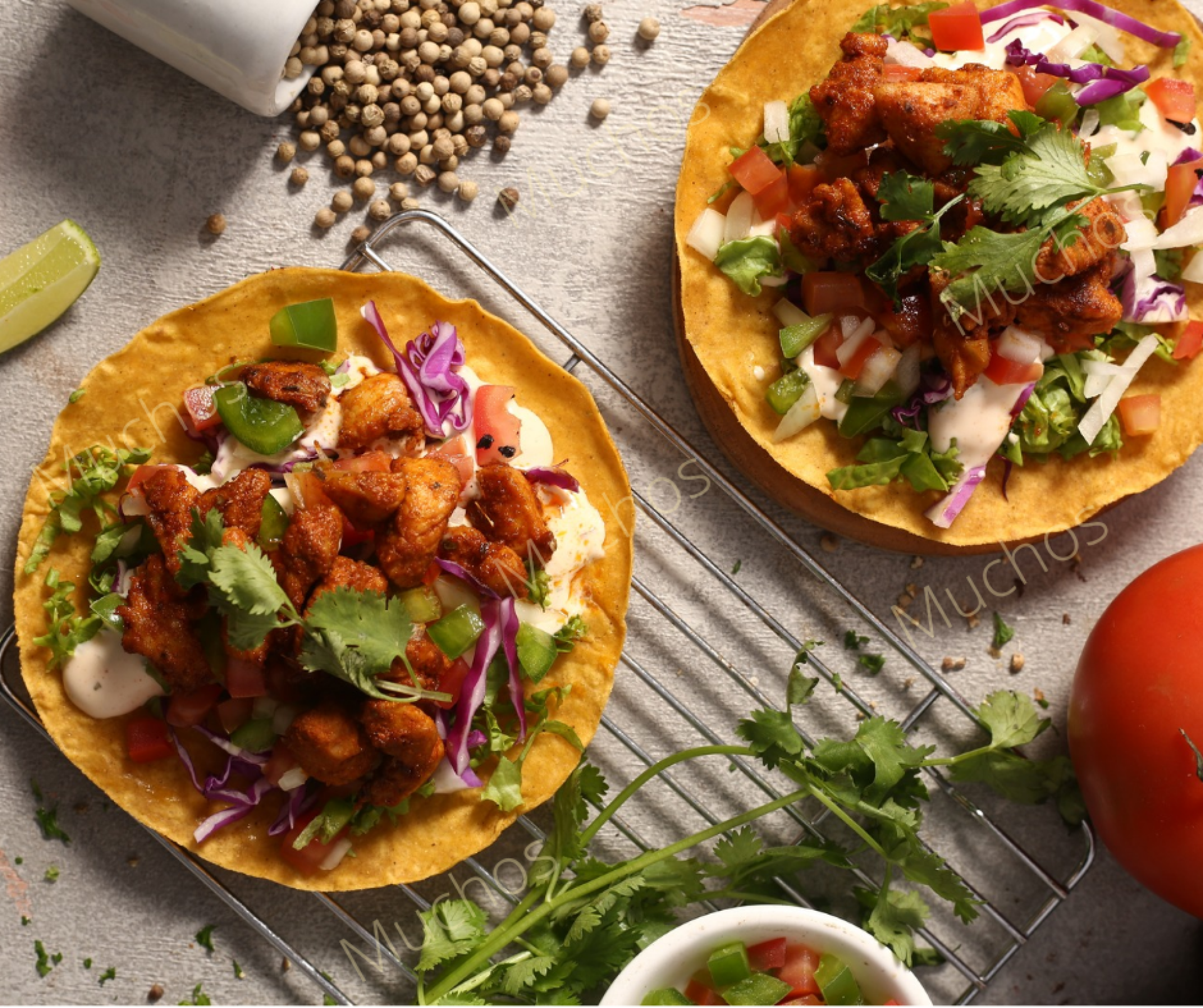 - Place kabobs on large plate; drizzle with reserved lime juice mixture and turn to coat evenly. Slide chicken and vegetables off each skewer onto 1 tortilla; serve with salsa